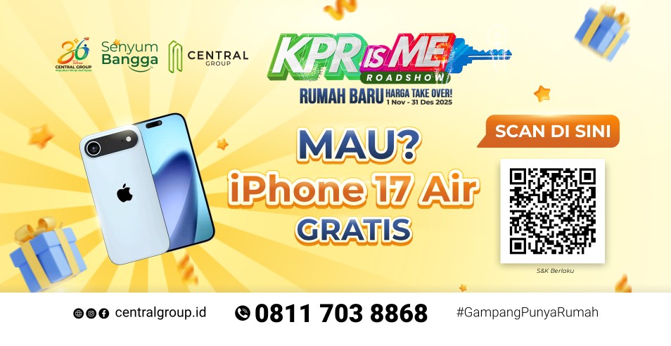 Melalui program KPR IS ME Roadshow, Central Group membagikan iPhone 17 Air GRATIS untuk siapa saja. Cukup scan barcode, isi data, dan kamu langsung berkesempatan mendapatkan hadiah eksklusif dari Central Group!